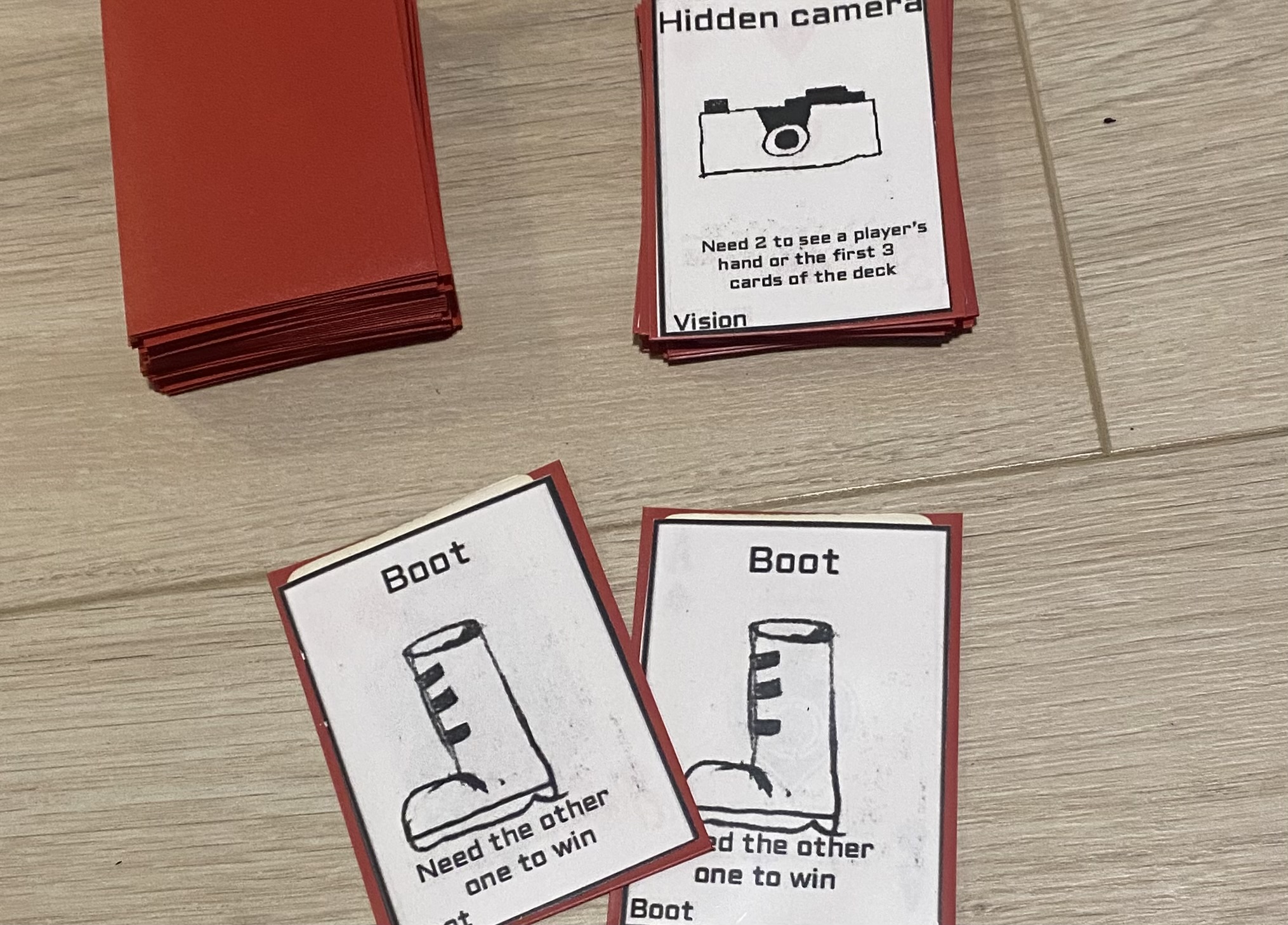 Use your attack cards and tactic cards to steal their cards or strategically get the boots! You can also use the vision cards to know if they have a boot or if the boots are at the top of the deck…